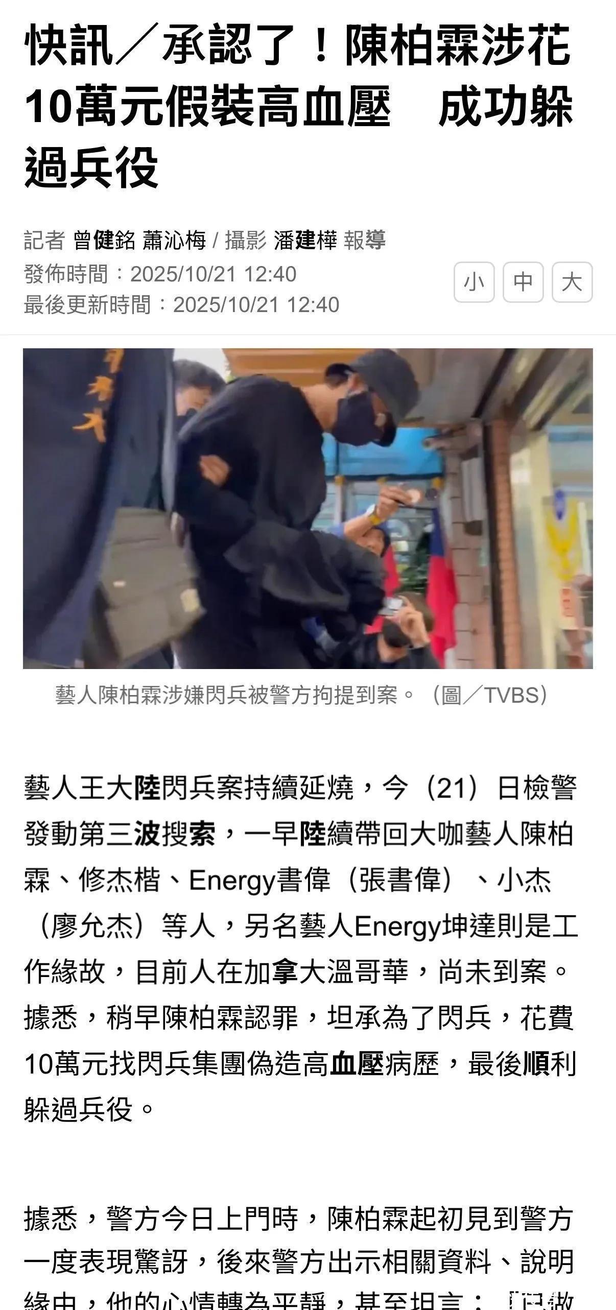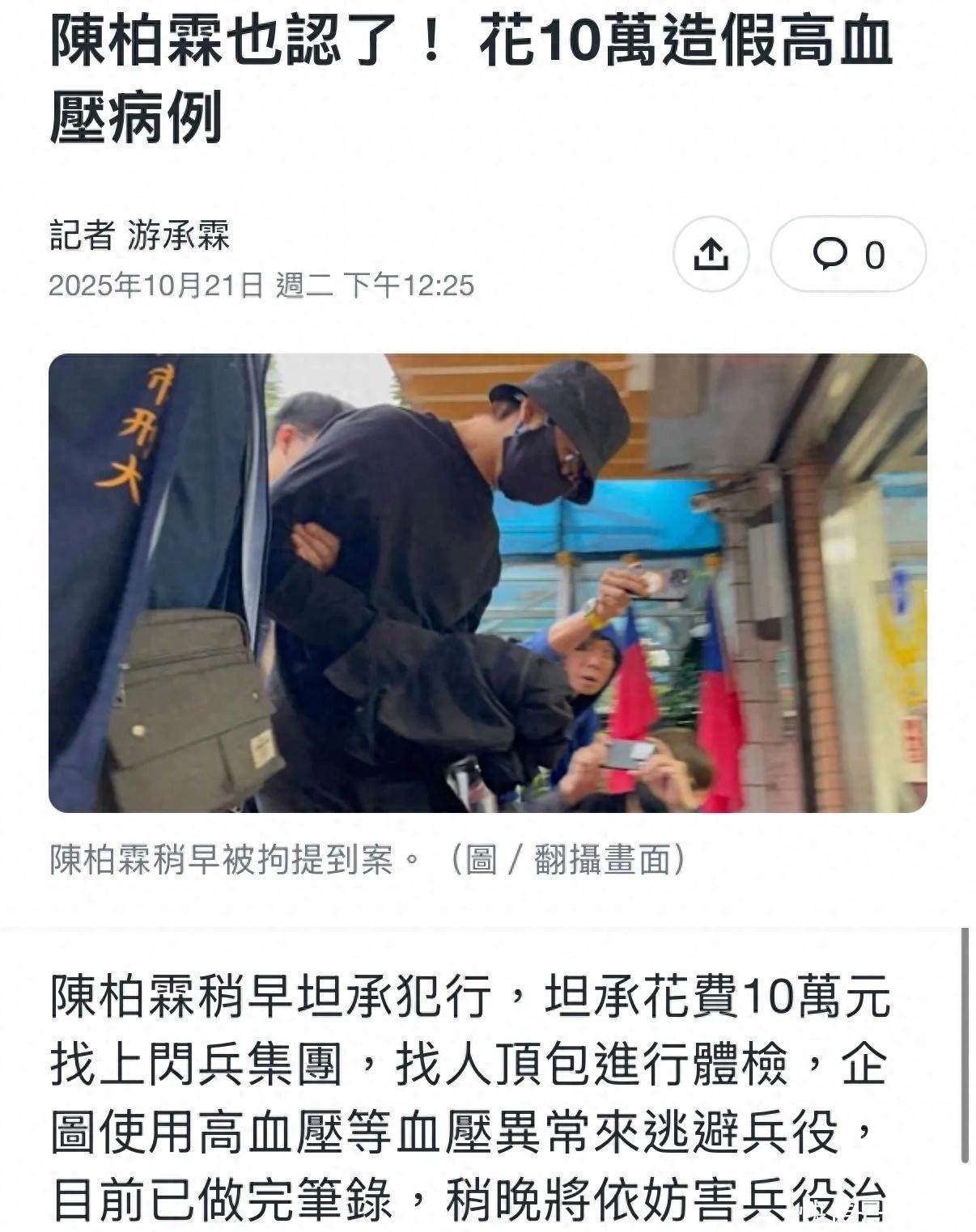 闹大!陈柏霖交代逃兵役细节:找人顶包体检,花10万造假高血压症
